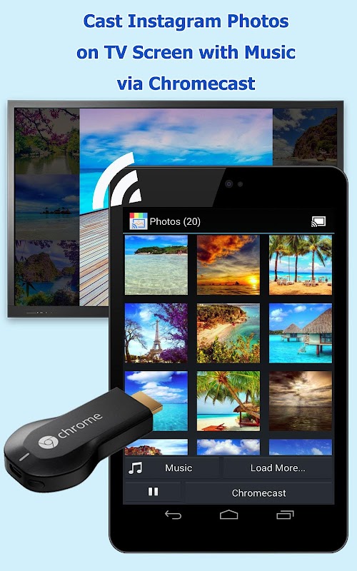 Download CastOnTV for Instagram now and show a stunning Instagram slideshow with background music on TV screen via Chromecast.