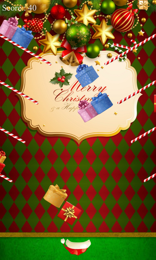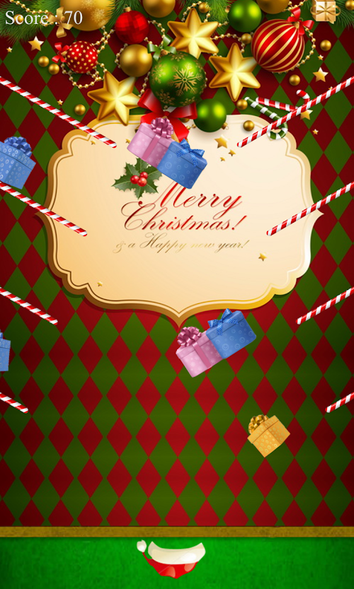 Santa brought you most of the presents you want and left his hat at green field. Touch your screen to move Santa hat and catch falling gifts. Catch as many gifts as possible by sliding the Santa hat. Complexity increases every level.