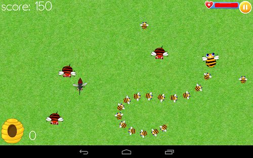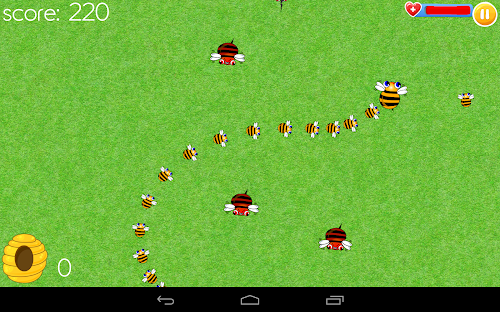 Manage bee-princess touch on the screen. Collect as many young bees without losing health. Dodge the red hornets, bloodthirsty mosquitoes, and other enemies. The more bees, the more honey! Do not miss bonus bugs!