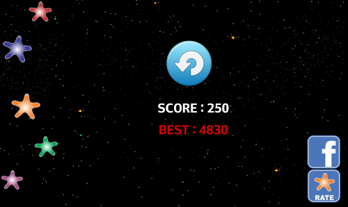Start the game by selecting the colored star that you like. It will be appreared randomly in the sky and try to catch it in instance. Try to score as much as you can.