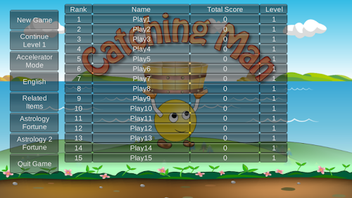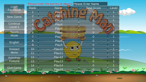 Catching Man is a pick fruit game, the game the way there were two ways to operate the touch screen with your fingers the way, the other is the use of mobile phones or lithographic the accelerator function (which is about moving away from the way) game.