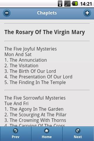 DESCRIPTION: The purpose of this app is to promote the love of Jesus Christ through prayer. This simple tool is designed to present the text of each prayer so that, over time, each can be memorized. In general, the prayers presented are to be said using the standard Marian Rosary, unless otherwise noted.