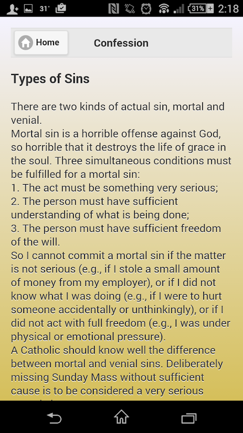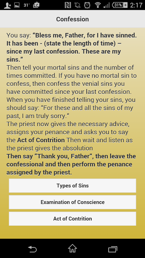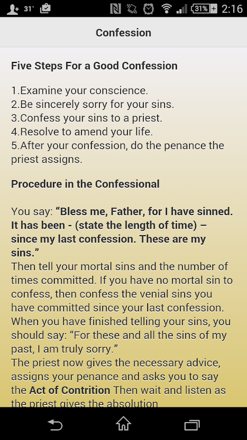 A good confession needs lot of preparation and this application will help you in doing so. May God help you to make a good confession.