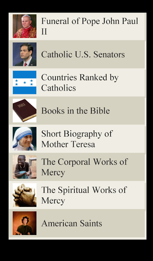 Do you love learning about religion, facts, trivia, the Bible and the Catholic Church? If so, this app is one that will give you many hours of enjoyment and is something that you will refer back to often as you study, pray and participate in services. A few of the lists in this app are: