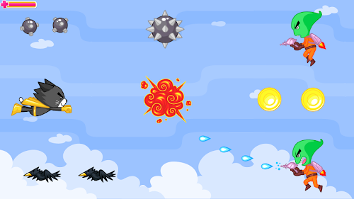 Collect coins, maneuver between different enemies - birds, meteors, aliens and UFOs, and other troubles, fire back, get awards and compete with friends - here, in brief, information about this game.