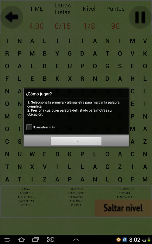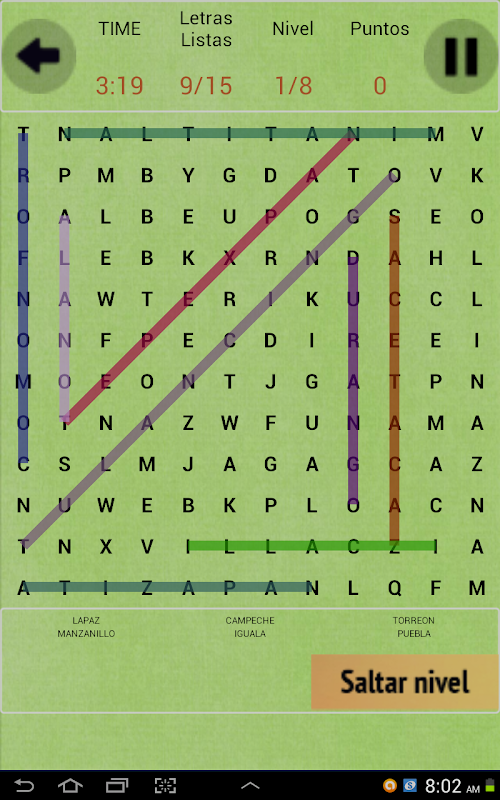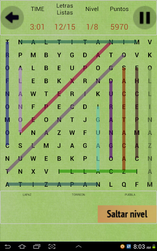 * Si no logras conseguir una palabra, presiónala de la lista para mostrar su ubicación.