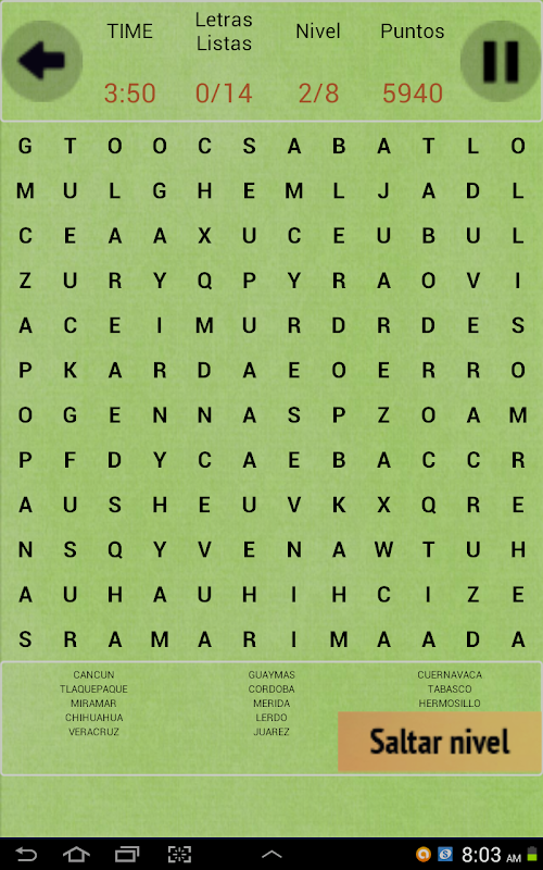 Olvida los crucigramas o sopas de letras en papel. Con nuestro juego pasarás horas de puro entretenimiento.*** FULLY IN SPANISH ***