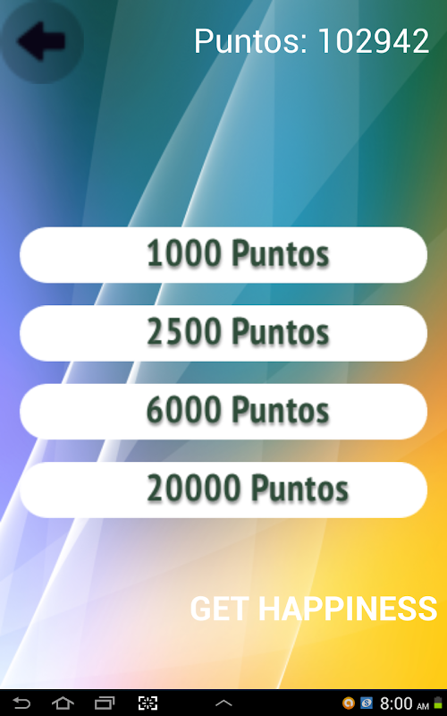 4. Si no suficientes puntos, podrás obtener más puntos en el menú principal.