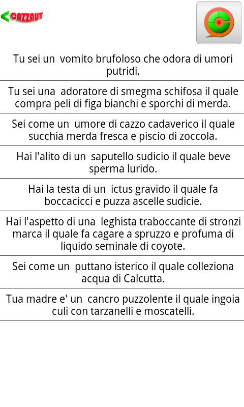 Per suggerimenti, informazioni o migliorie inviare un'emailGenerator of insults in Italian for Android with voice synthesis.