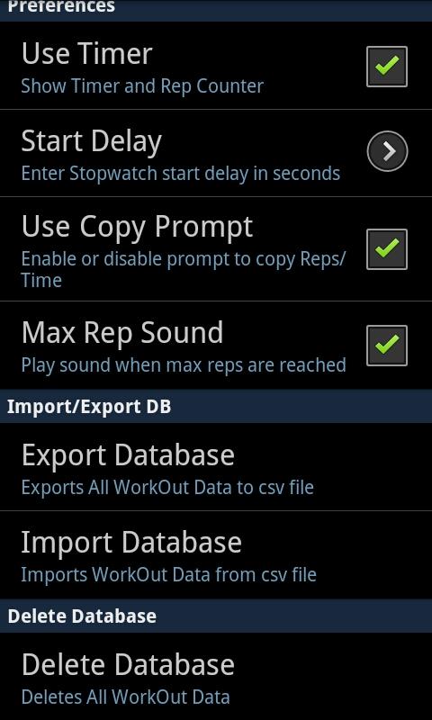 * Uses customizable audio feedback for timing your reps (up/down and pause times) for each of the Big 6.