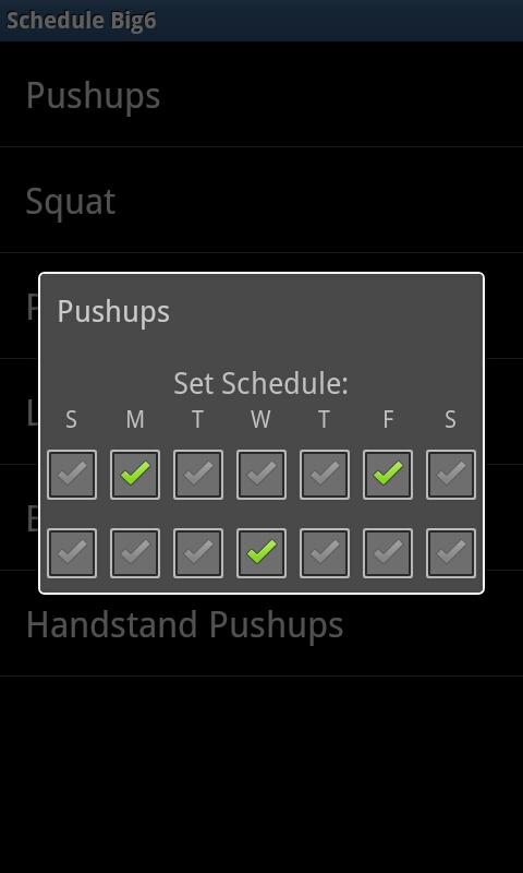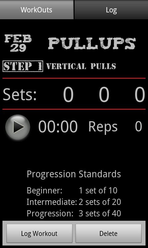 * Log your progress in each of the Big 6 workouts (Pushups, Squat, Pullups, Legraise, Bridge, and Handstand Pushups)