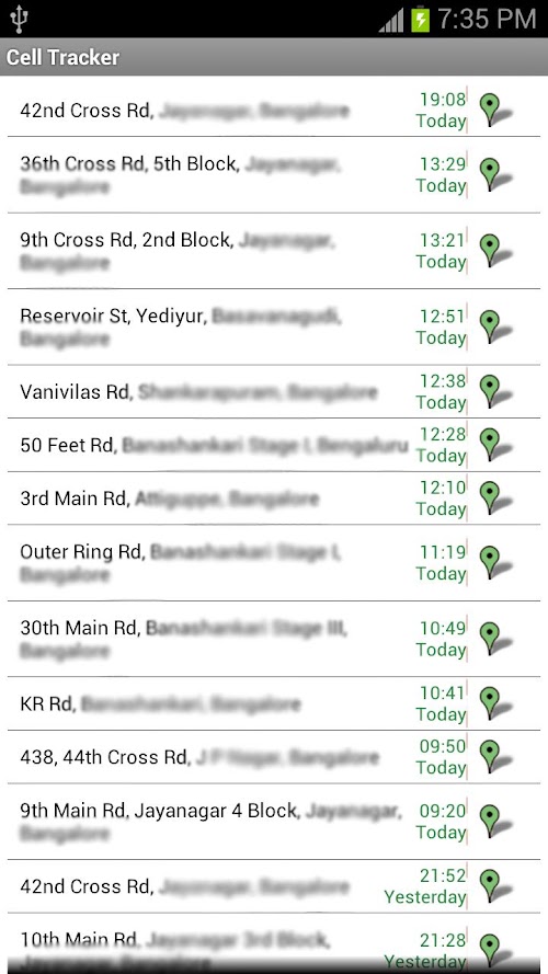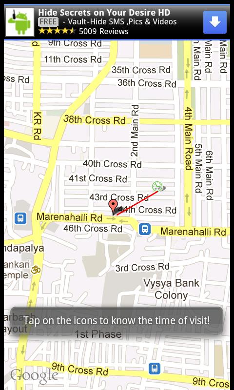 Use Cell Tracker app to keep track of the location of your cell. Track all the locations you have visited in the last few days with your Android phone. To check the locations visited you have to launch the app and click on “View Now”. No need to turn on the GPS. This application works even without GPS. The application collects location info once every 0.5 hours through GPRS/Wi-Fi and hence the impact on battery is minimal.