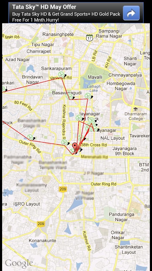 - Click on “View Now” link in the app and you will see the tracks of the cell (locations visited) on Google Map view.