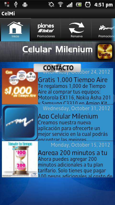 Descarga tu App Celular Milenium para tener las ultimas promociones, tener información exclusiva y disfrutar de Celular Milenium Radio.Get Mobile App Milenium to get the latest promotions, have exclusive information and enjoy Milenium Mobile Radio.