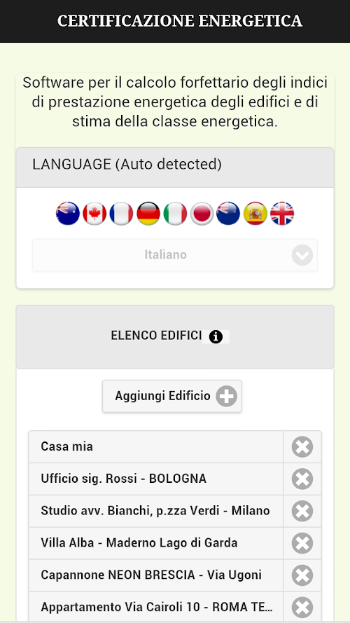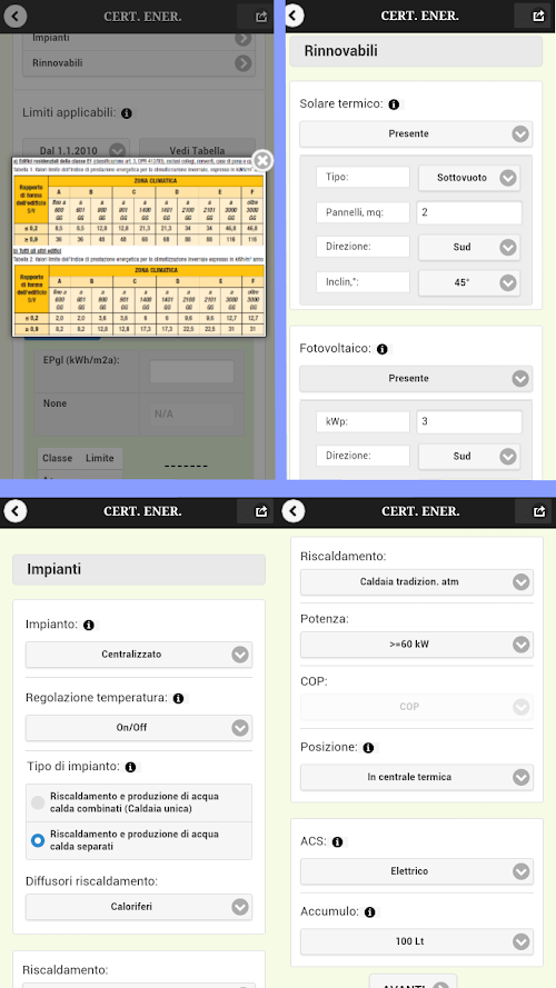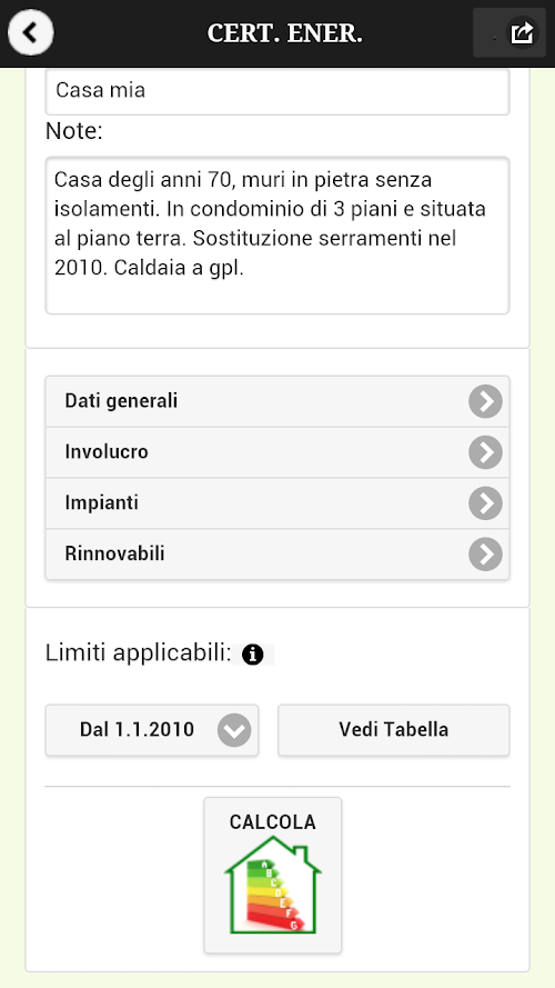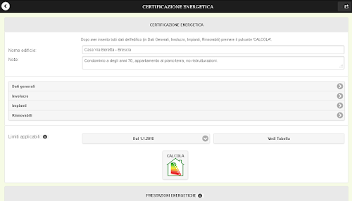 This application allows you to calculate the Indices of Energy performance of residential buildings (short of the other buildings), an estimate of the energy requirement and its Energy class (compared to the national tables and the Lombardy Region).