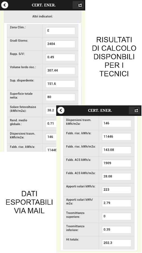 It is not necessary to be an expert, anyone can use this application, the data to be entered are clear, proposed automatically depending on the year of construction of the house and with immediate explanations for the correct compilation.