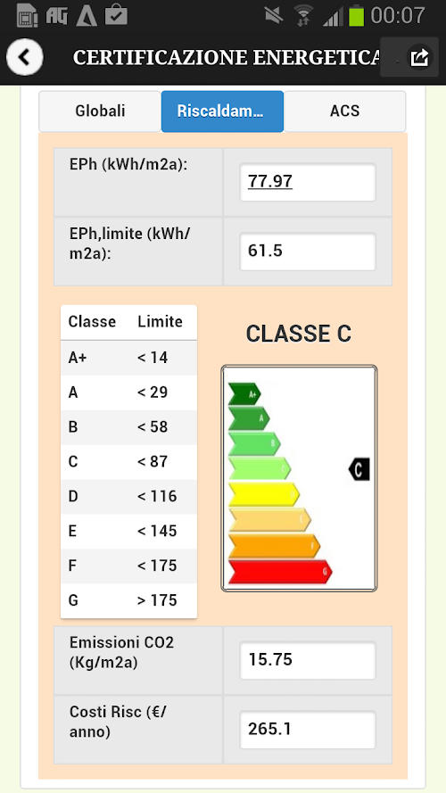 Il valore fornito non ha nessuna valenza legale, rivolgersi ad un tecnico specializzato in classificazione energetica per l'ottenimento dell'attestato di prestazione energetica ACE/APE.