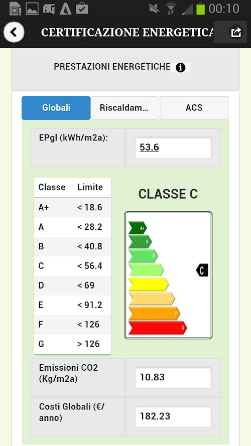 After the procedure will be provided an estimate in kWh / m2a of the building's energy needs, global, for heating and domestic hot water.