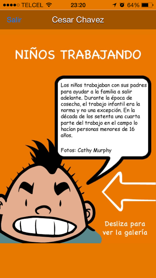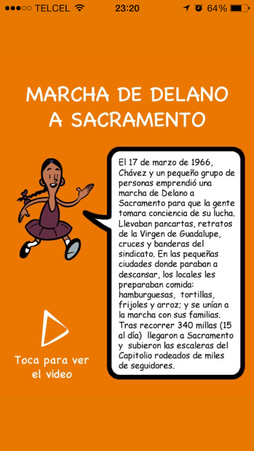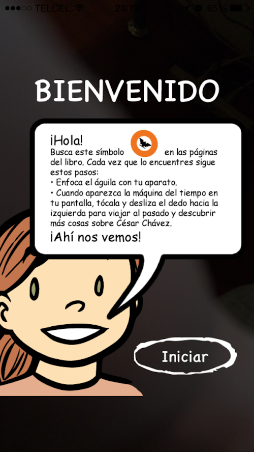 Augmented reality application to supplement information from the book " Cesar Chavez and the time machine "