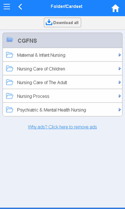 CGFNS Flashcards app includes 1700 premade flashcards from 5 categories which cover all aspects of the Commission on Graduates of Foreign Nursing Schools exam: