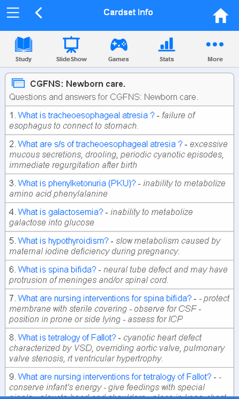 Using Flashcard will help you learn faster and remember more in a shorter time by showing flashcards just before you will forget them. CGFNS Flashcards app has several learning modes: Study, Slide show, Matching, Memorize, Quiz to make the learning process for CGFNS exam more exciting and fun.