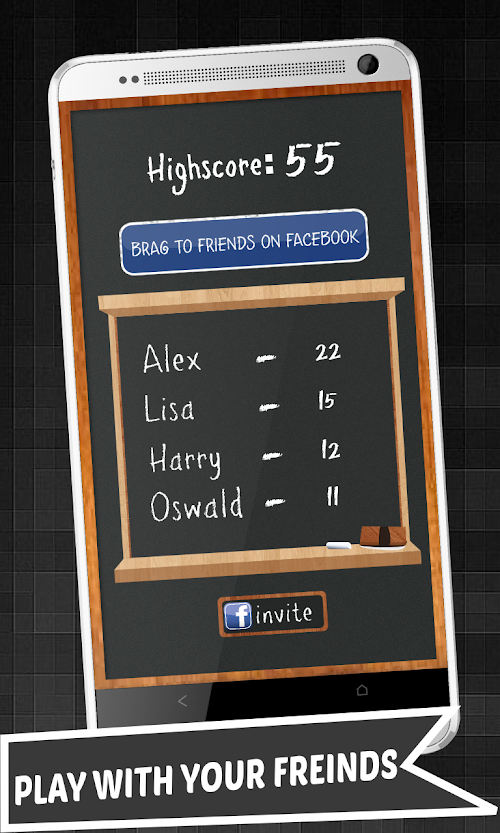 ** Share ON FACEBOOK : Now share your score and achievements with your friends and family and flaunt among them. Let them know about your leader-board rank and your high scores.