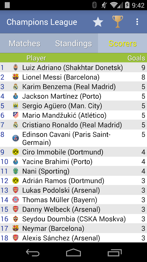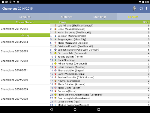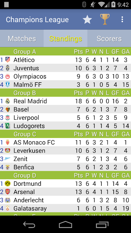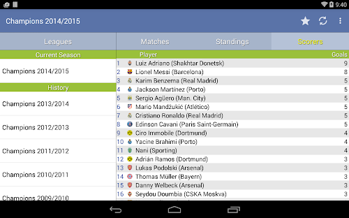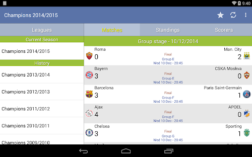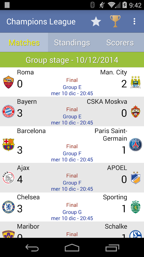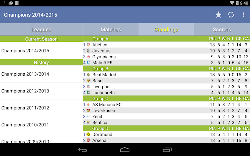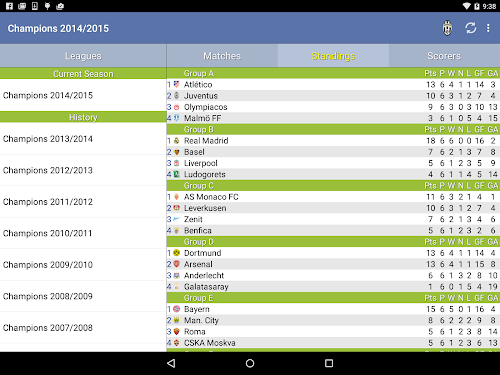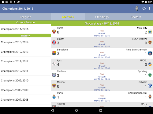 With Champions 2014/2015 you always have real time results, standings and scorers with you, together with video highlights of the best actions and goals.