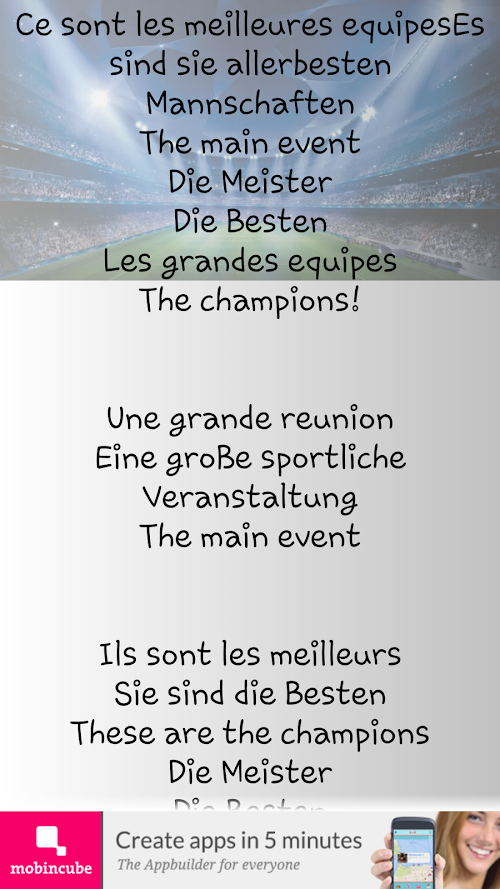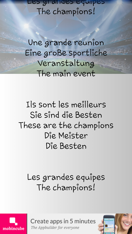 If you are looking to download other versions of Champions League Anthem Android App, We have 1 version in our database. Please select one of them below to download.