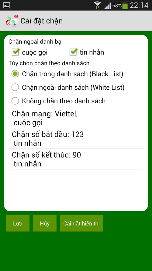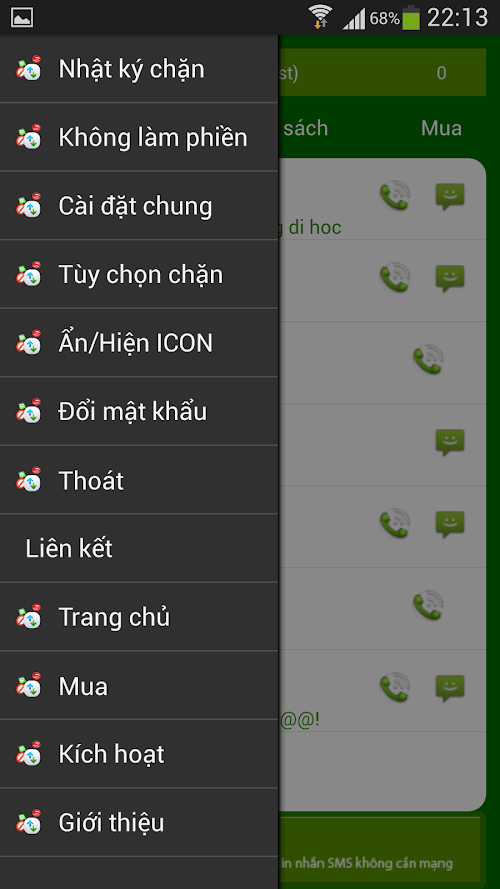 Chặn cuộc gọi vả SMS (Ứng dụng Việt | ung dung viet) | Chan cuoc goi là ứng dụng đơn giản hỗ trợ chặn cuộc gọi và tin nhắn không mong muốn, tin nhắn rác hoàn toàn thuần việt cho người Việt Nam