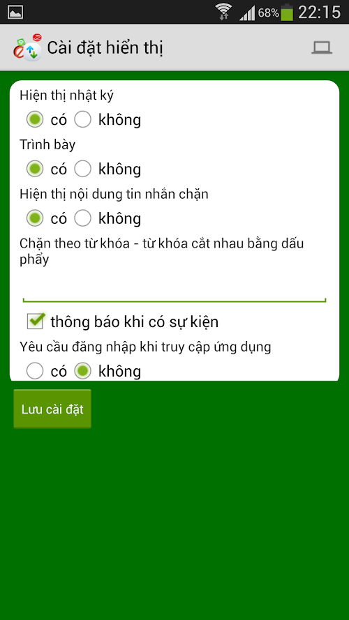 This version of Chan cuoc goi va SMS Android App comes with one universal variant which will work on all the Android devices.