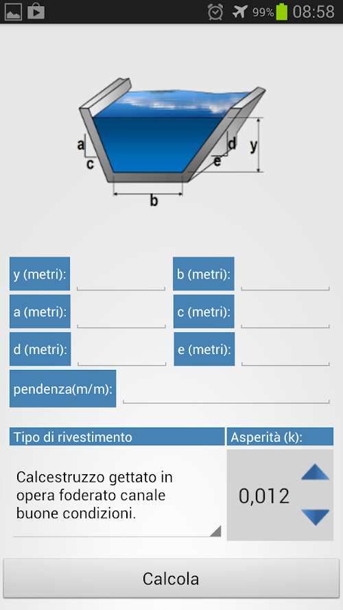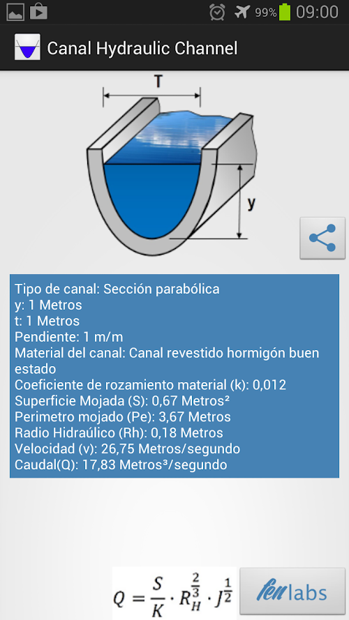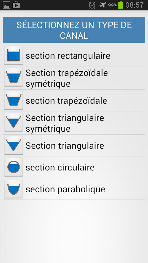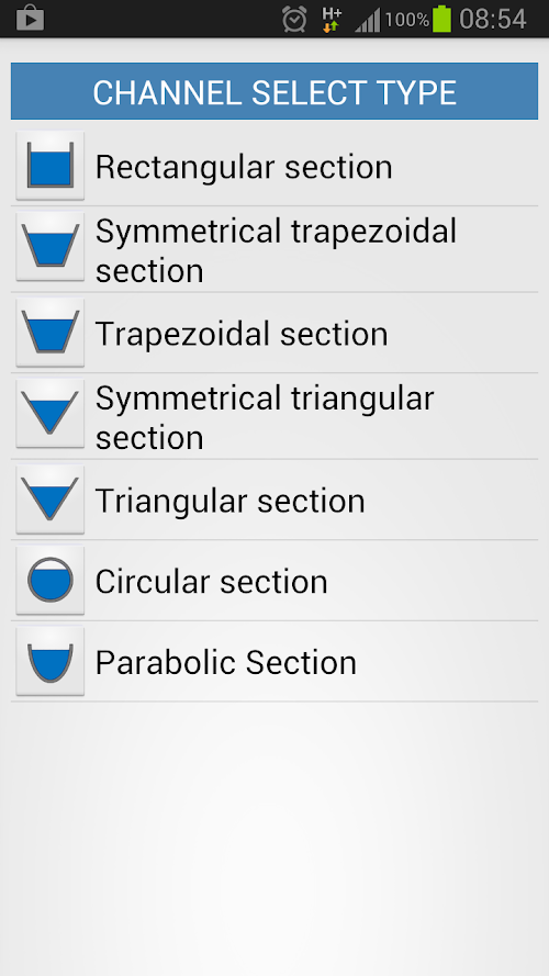 Application designed to make, in a simple way, calculation of geometric and hydraulic characteristics of all types of channels.