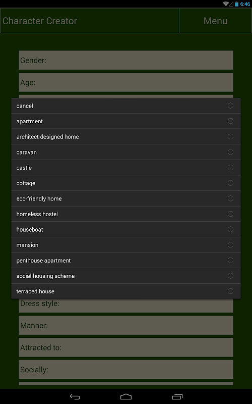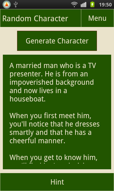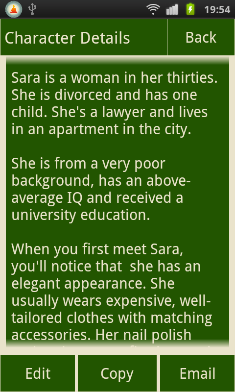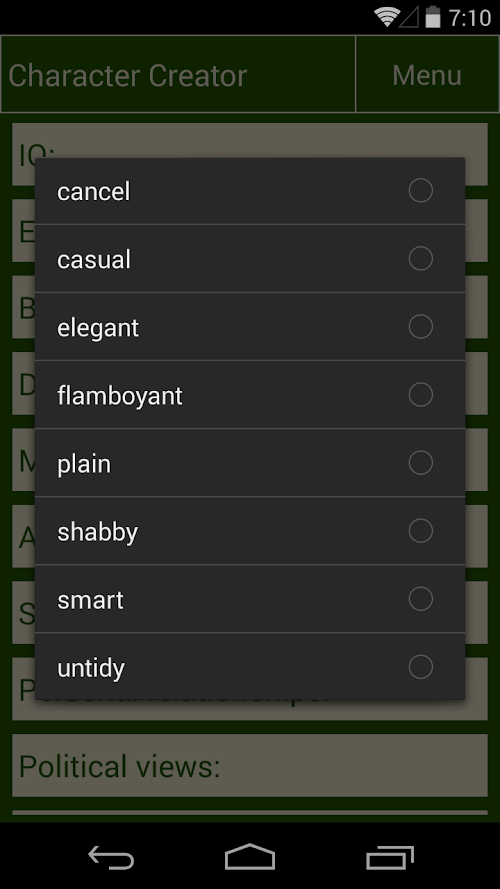 A great aid for writers everywhere - take the effort out of creating new characters. Choose options for your character from drop-down lists. You can add your own character traits as well. The app will put them together to create a realistic character description.