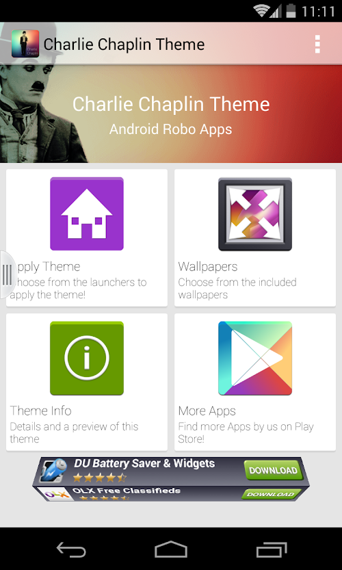 If you are looking to download other versions of Charlie Chaplin Theme Android App, We have 1 version in our database. Please select one of them below to download.