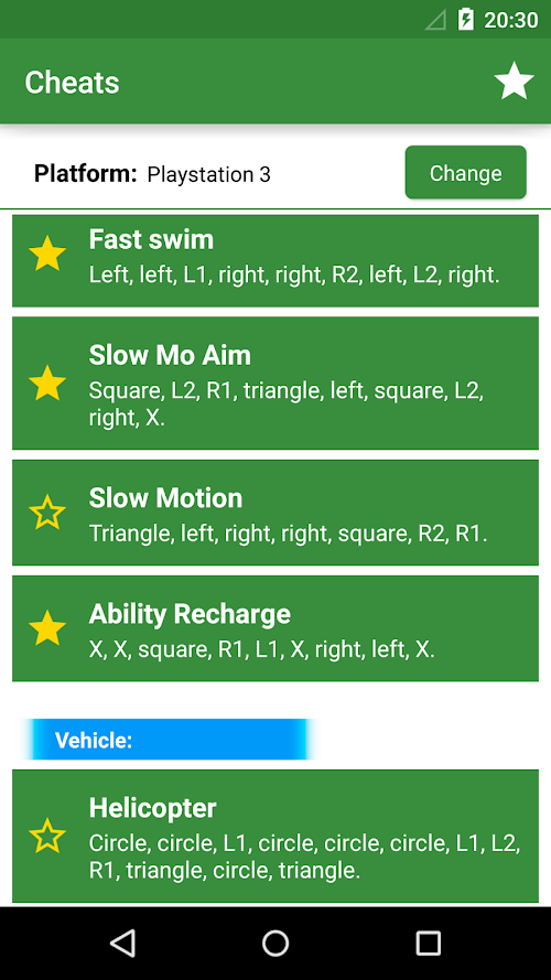 In this app you will find all CHEATS and codes for GTA 5 (GTA V) for PC, Playstation 3, Playstation 4, Xbox 360 and Xbox One. You will also find one button to save your cheats in favourite, and later you will be able to see it very fast.