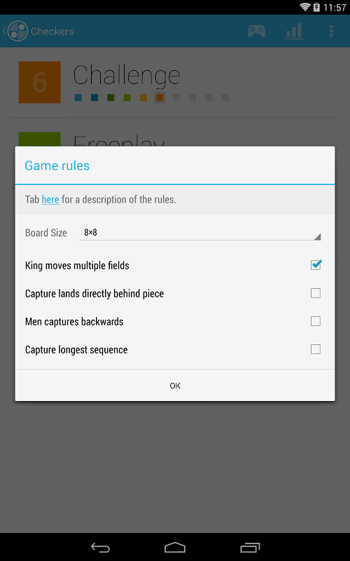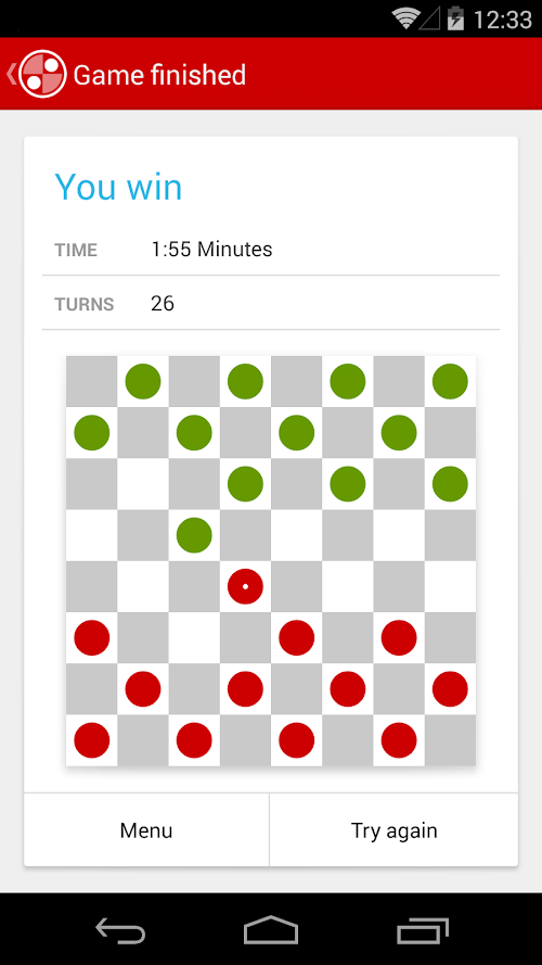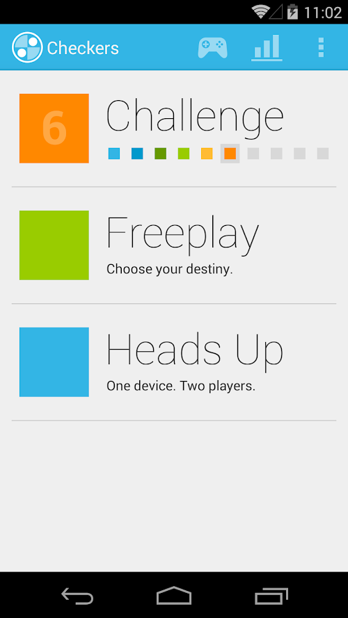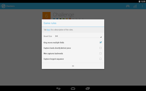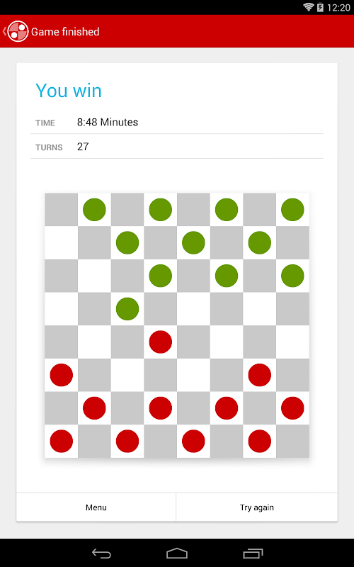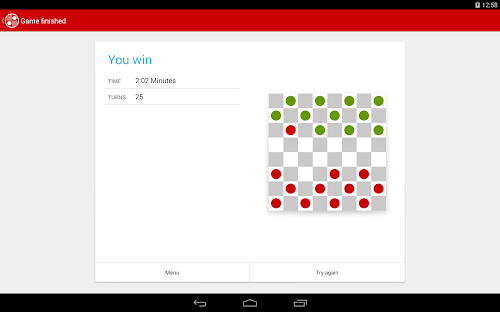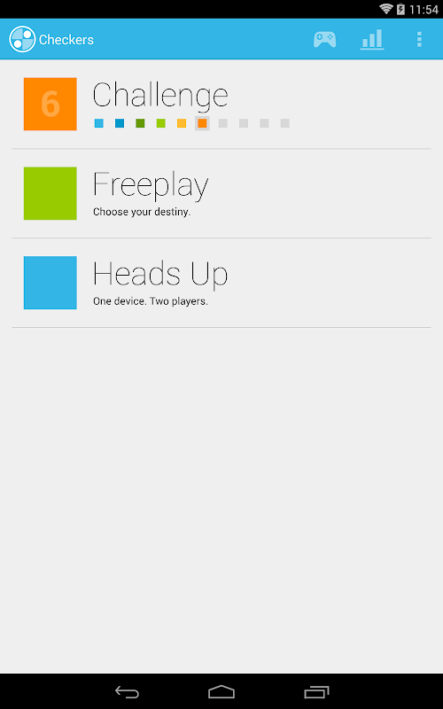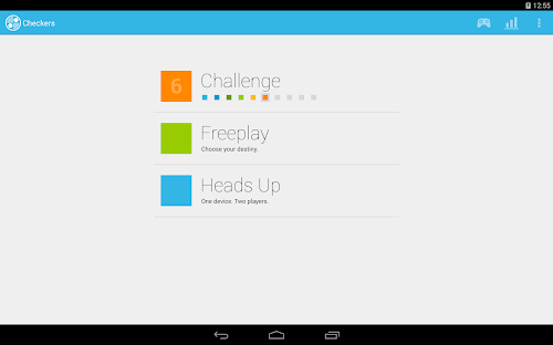 Enjoy the world famous checkers board game (also known as draughts) in the palm of your hand. Experience a modern looking game with precise controls and fluent graphics. Checkers has multiple game modes like Challenge and Freeplay. In Challenge mode you fight through many levels against an increasingly stronger AI opponent. If you want to choose your enemies strength directly, try the Freeplay mode. And finally you can compete with a friend on one device in Heads Up mode.