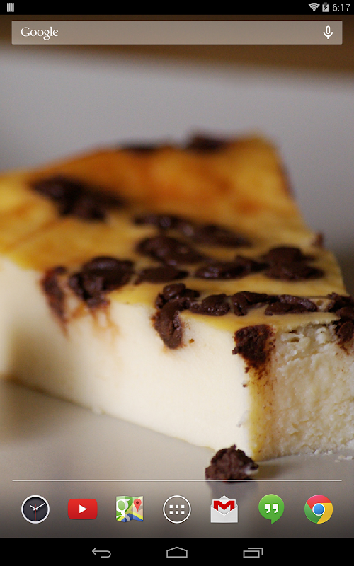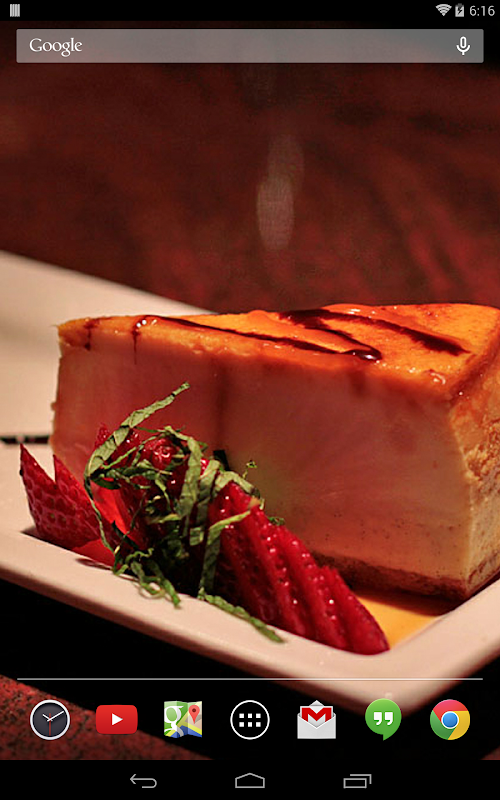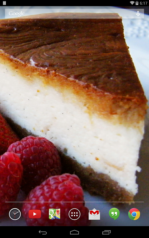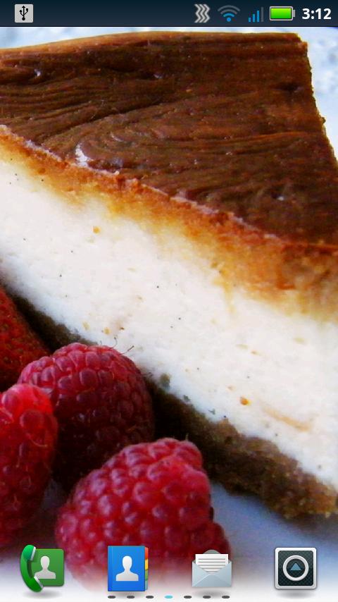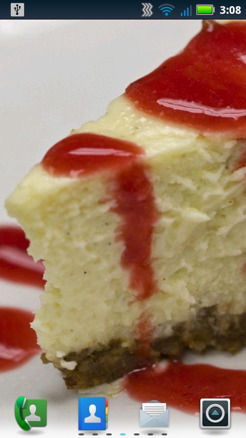 Select text from Wikipedia, which does not endorse this product. No cheesecake was harmed in the making of this app. Licensed under the creative commons creativecommons.org/licenses/by/3.0/. Text at wikipedia.org/wiki/Live_Wallpaper and wikipedia.org/wiki/Cheesecake.