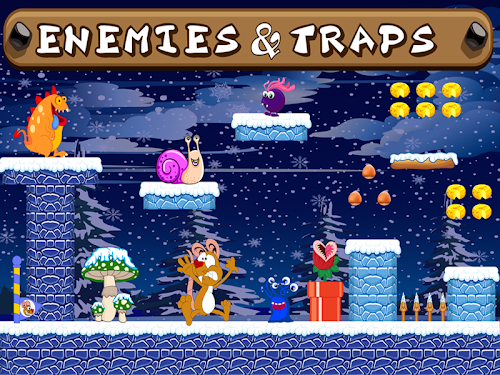 Cheester is a simple mouse; he likes to sneak around in fields, forests, and all the other places. It's all fun and games until winter comes. Now, he knows he has to stock food for the upcoming season, but he has many obstacles on his way. He needs YOUR HELP to achieve his goal and be prepared for the harsh weather of winter! Your task is simple: Collect cheese, don't die. At least he's prepared for all the monsters on his way, thanks to his squirrel friends. Whenever he faces a monster, he can just throw some nuts at it and destroy it! He can also get rid of the monster by jumping on them... But, come on, as long as you have enough nuts, why would you take the risk, right? Don't worry if you run out of nuts, there're so many of them laying around, you can always collect more! In case you fall or fail to jump over an obstacle, we've got your back! You have five lives when you start the game - and you will be able to collect more, and there're checkpoints on every level, so, you won't have to start from the beginning if you pass by a checkpoint.