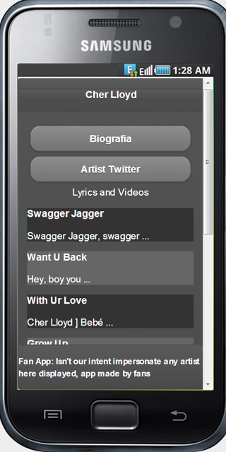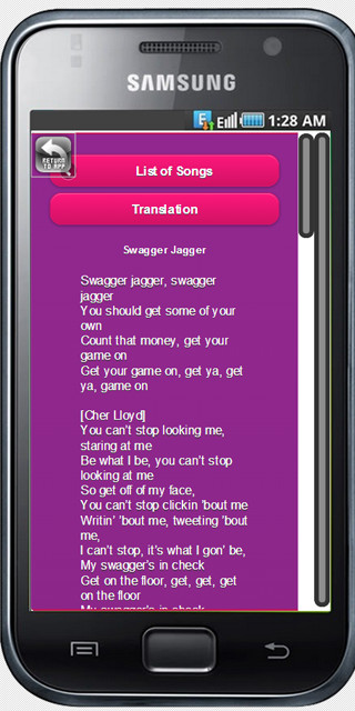 This version of Cher Lloyd lyrics Android App comes with one universal variant which will work on all the Android devices.