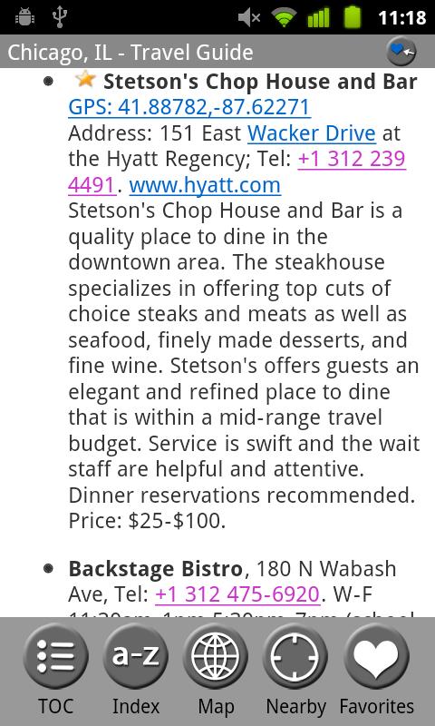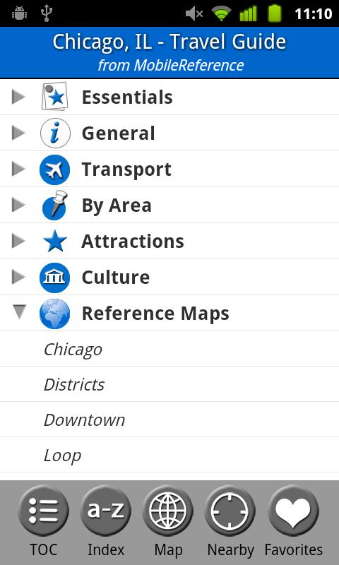 MobileReference Travel Guides provide detailed, practical information about attractions, landmarks, transportation, cultural venues, dining, lodging, history and much more. They are indexed alphabetically and by category, making it easier to access individual articles. Attractions can be viewed on an offline GPS map along with your current location so that you can easily find attractions near you as you explore the city.