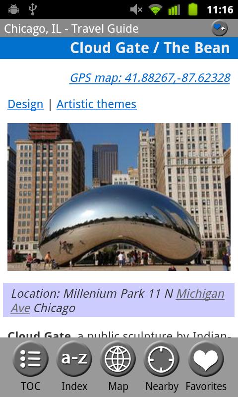MobileReference Travel Guides provide detailed, practical information about attractions, landmarks, transportation, cultural venues, dining, lodging, history and much more. They are indexed alphabetically and by category, making it easier to access individual articles. Attractions can be viewed on an offline GPS map along with your current location so that you can easily find attractions near you as you explore the city.