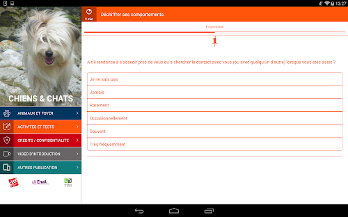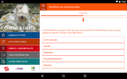Grâce à cette application pour mobiles et tablettes, en menant de petites expériences et en répondant à des questionnaires, vous en saurez plus sur votre chien ou votre chat. Dans le même temps, vous permettrez aux chercheurs en comportement animal de l’Ecole Nationale Vétérinaire d’Alfort et de l’Université de Namur de disposer de plus de données pour approfondir leurs travaux. En participant ainsi à leurs recherches, vous faites ce que l’on appelle de la science participative. With this application for mobile and tablets, conducting small experiments and answering questionnaires, you will learn more about your dog or cat. At the same time, allow the animal behavior researchers at the National Veterinary School of Alfort and the University of Namur to have more data to further their work. By participating in their research, you do what is called participatory science.