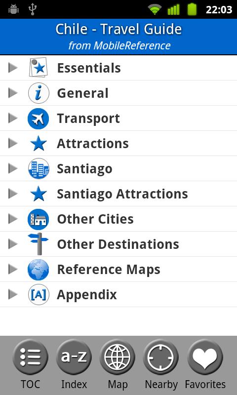 MobileReference Travel Guides provide detailed, practical information about attractions, landmarks, transportation, cultural venues, dining, lodging, history and much more. They are indexed alphabetically and by category, making it easier to access individual articles. Attractions can be viewed on an offline GPS map along with your current location so that you can easily find attractions near you as you explore the city.