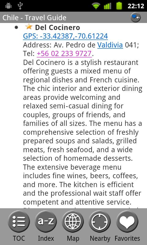 ✔ The top restaurants have been individually selected by MobileReference editors. These restaurants are marked by a star in the EAT chapter and are plotted on the GPS map.