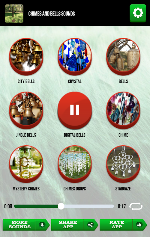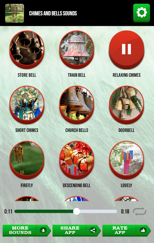 Chimes and Bells Sounds will put smile on your face every time you get a text message or an e-mail. Feel fantastic everyday with amazingly loud free ringtones for cell phones. Enjoy most popular bell sounds and share them with your friends and family! Pick your “favorite free ringtone” from this sound effects soundboard and set it as a SMS alert notification, chat notification or alarm sound! Chimes and Bells Sounds bring the atmosphere of peace and tranquility and you will be the most sophisticated person around if you download chime rings from this soundboard, completely free of charge! Chimes and Bells Sounds offers you tremendous selection of message alert tones, peaceful alarm sounds and the most serene ringtones you can imagine!