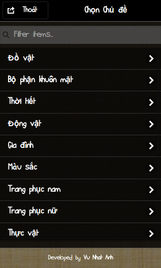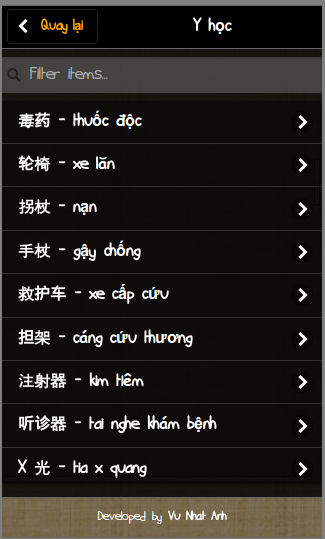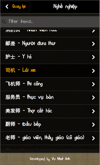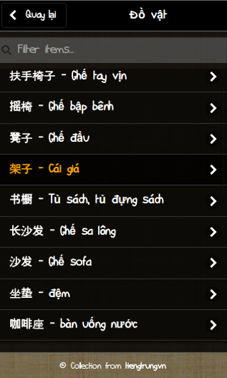 This is a free applications that include common Chinese vocabularies and Vietnamese translations. All are stored to a life familiar categories that is very easy to learn.