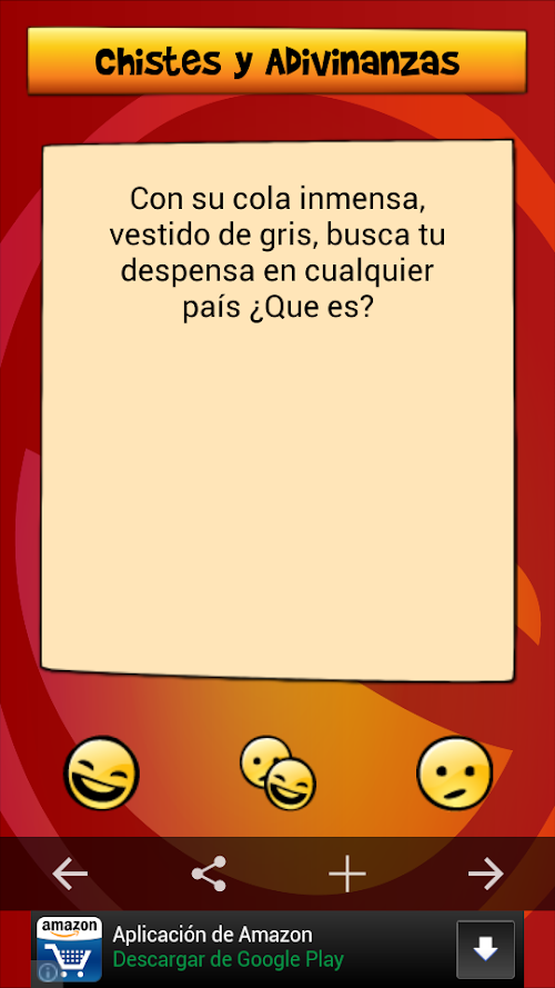 Podrás cambiar entre chistes, adivinanzas o chistes y adivinanzas mezclados para reír y pensar por igual. Para ver las soluciones a las adivinanzas sólo tienes que presionar el botón +, en chistes ese botón te contagiará su risa. ¡Cuidado con el volumen!