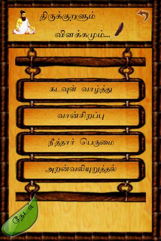 The classic Tamil Literature with suitable picturesque images. This is a handy App for Thirukural Lovers. This application shows daily a Thirukural with its meaning in Tamil and English.