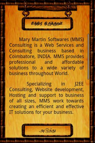 If you are looking to download other versions of Chithira Thirukural Android App, We have 1 version in our database. Please select one of them below to download.
