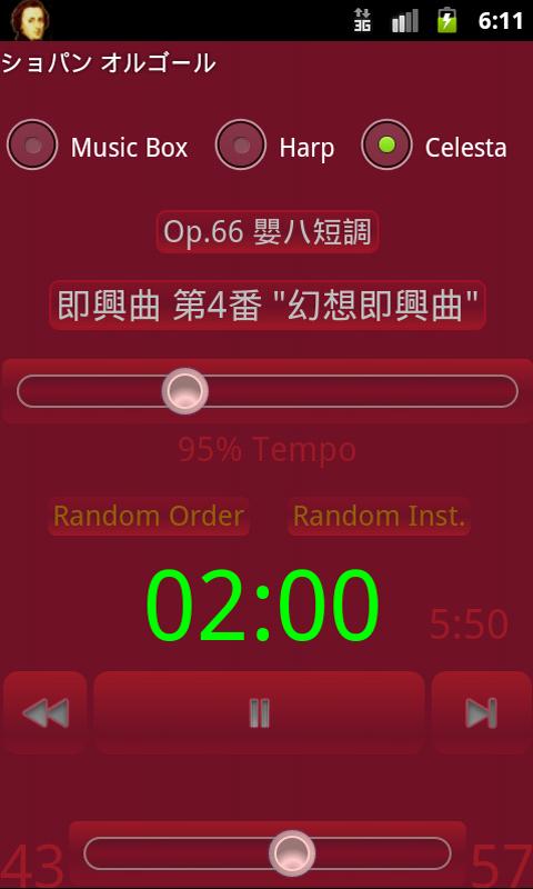 In addition, you can choose "Random instrument" at the configuration screen. Then the instruments will be set to individual songs randomly.