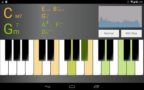 * Analyzes the audio which entered from the microphone, and display the notes and chord. (Requires several seconds to recognize)